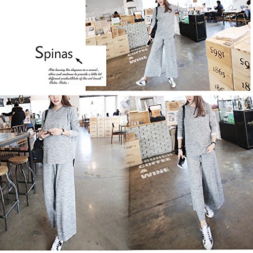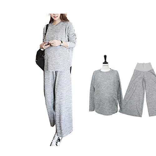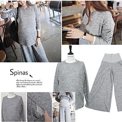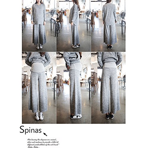 Spinas(スピナス) 産前から産後まで長~く着用できる 動きやすさ抜群 無地マタニティ兼授乳トレーナーワイドパンツセットアップ (M)
