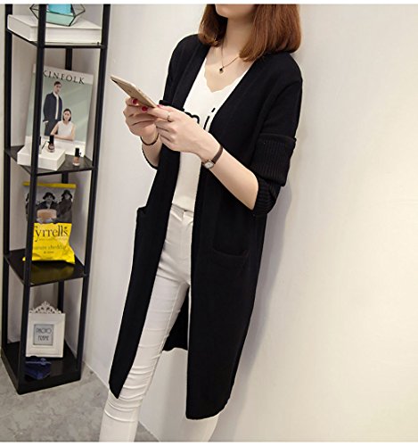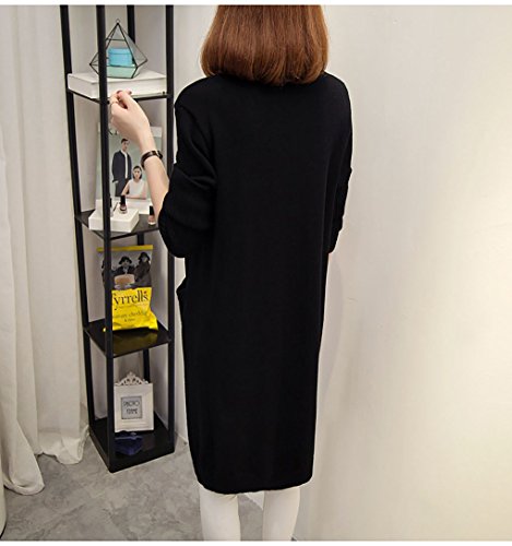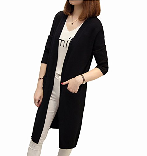 Spinas(スピナス) マタニティ レディース 前開き ロング丈 カーディガン ニット コーディガン 無地 シンプル 秋冬 あったかい 全3色 (キャメル ベージュ ブラック) (ブラック)
