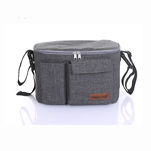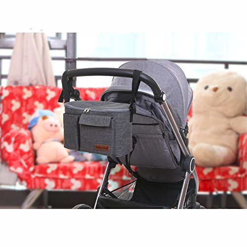 Spinas(スピナス) ベビーカー用バッグ 多機能 小物 収納 バッグ チャック付き蓋 全4色(レッド/ブルー/グレー/ブラック) (グレー)