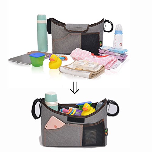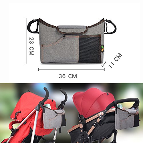 Spinas(スピナス) ベビーカー用バッグ 多機能 小物 収納 バッグ 蓋つき 全4色(グレー/ブルー/カーキ/レッド) (カーキ)