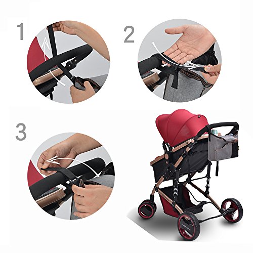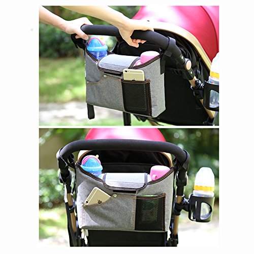 Spinas(スピナス) ベビーカー用バッグ 多機能 小物 収納 バッグ チャック付き蓋 全4色(レッド/ブルー/グレー/ブラック)