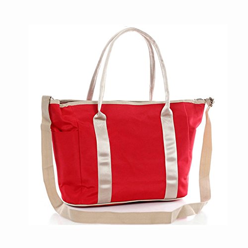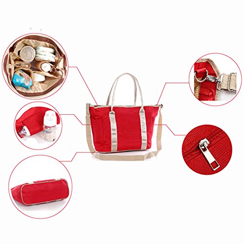 Spinas(スピナス) 大容量 マザーズバッグ ママバッグ 多機能 無地 斜めがけ ショルダーバッグ 全4色(ブラウン/ブルー/ピンク/レッド) (レッド)