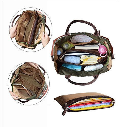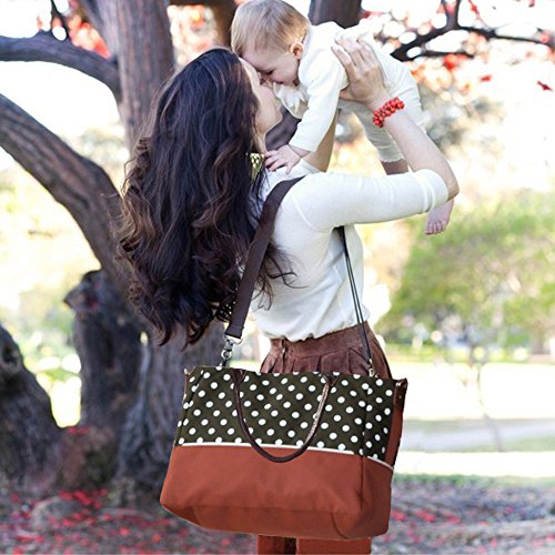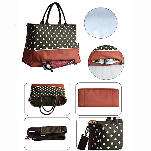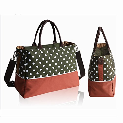 Spinas(スピナス) 大容量 マザーズバッグ ママバッグ 多機能 ドット柄 斜めがけ ショルダーバッグ 収納ポーチ付き 全4色(ダークグリーン/ライトグリーン/レッド/ブルー) (ダークグリーン)