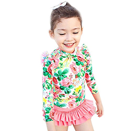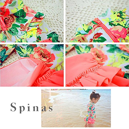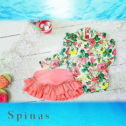Spinas(スピナス) キッズ ベビー 水着 ラッシュガード フリル 上下セット お揃い おしゃれ 子供服 姉妹 友達 ペア プレゼント 2歳 3歳 4歳 5歳 6歳 7歳 8歳 海 プール (L, ホワイト×フラワー)
