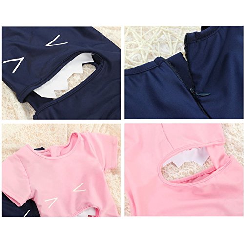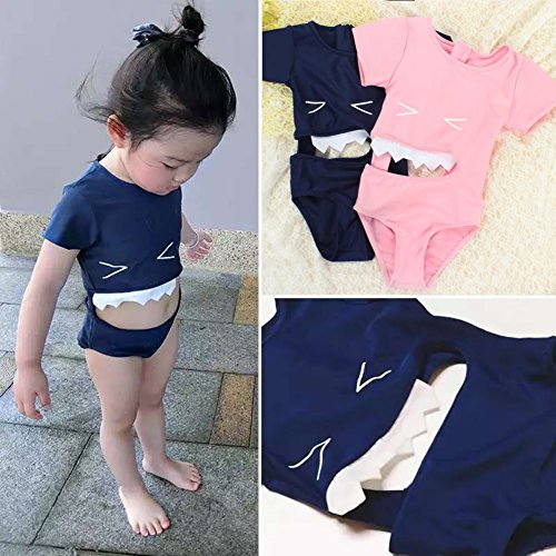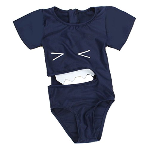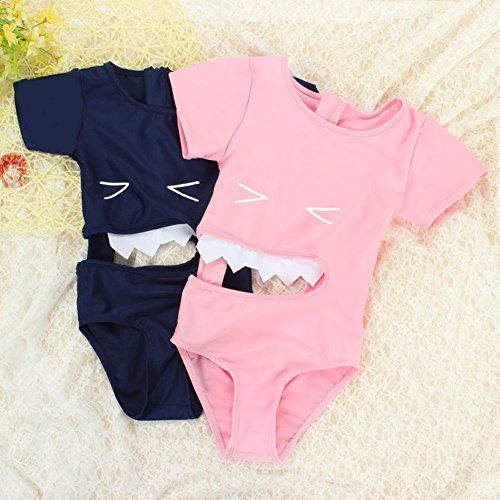 Spinas(スピナス) ベビー キッズ 水着 ワンピース モンスターの口があんぐり ユニークなデザイン 半袖 オールインワン 女の子 男の子 75cm~115cm 全2色(ネイビー ピンク)