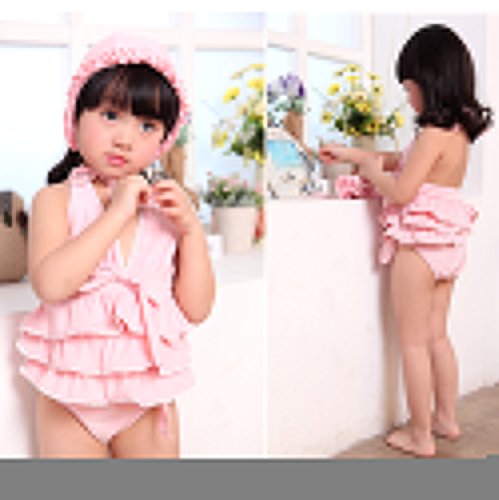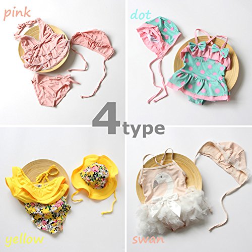 Spinas(スピナス) ベビー キッズ 水着 女の子 おしゃれな デザイン ワンピース 水着 かわいい 帽子付き 90-120cm 全4種(ピンク イエロー ドット スワン)