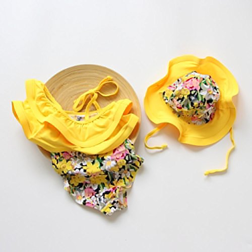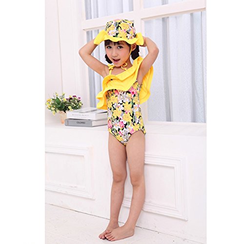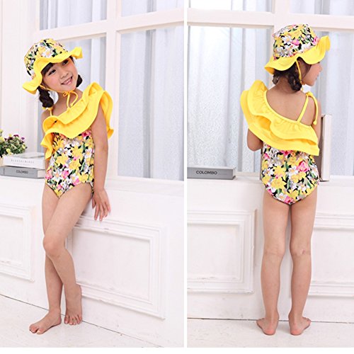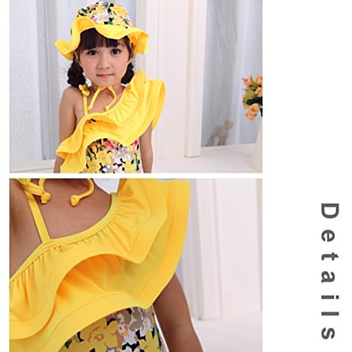 Spinas(スピナス) ベビー キッズ 水着 女の子 おしゃれな デザイン ワンピース 水着 かわいい 帽子付き 90-120cm 全4種(ピンク イエロー ドット スワン)