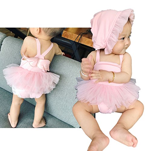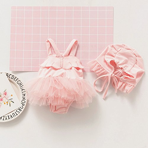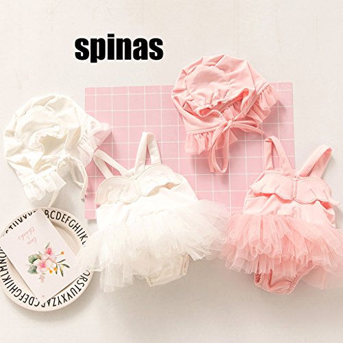 Spinas(スピナス) 激カワ 女の子 水着オールインワン キャップ付き フリル チュチュ水着 夏海水浴 プール 水あそび 2点セット