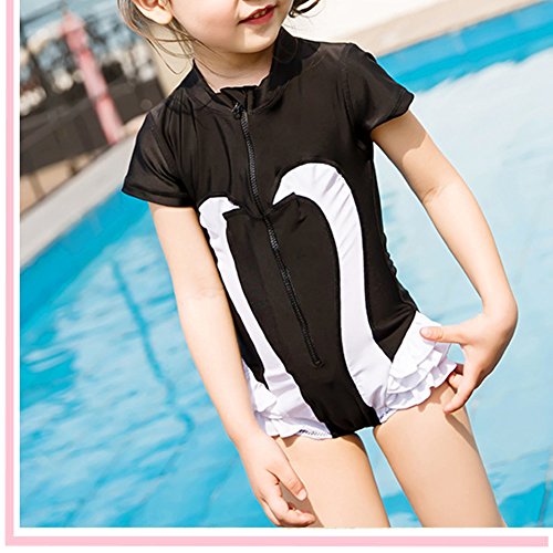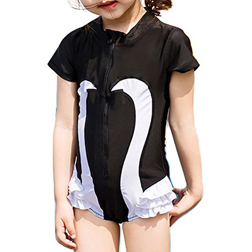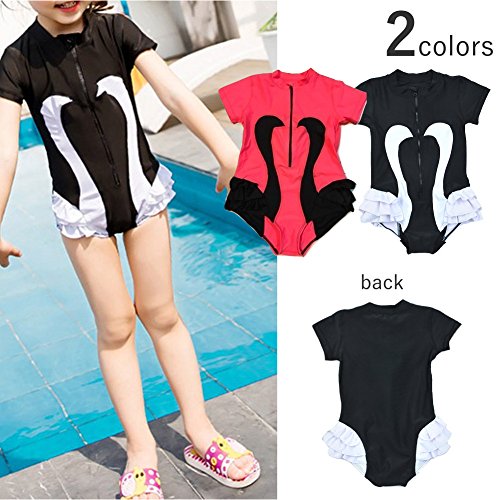 Spinas(スピナス)ベビー キッズ オールインワン 水着 スワン 白鳥 フリル 着脱しやすい 前ファスナー 子供 水着 女の子用 90-130cm 全2色( ブラック ピンク )
