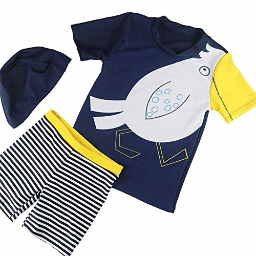 Spinas(スピナス)ベビー キッズ 水着 男の子用 3点セット 半袖 ラッシュガード スイムパンツ キャップ かわいい 夏モチーフ 80-130cm 全4種(ヨット バード イエローシャーク ブルーシャーク)