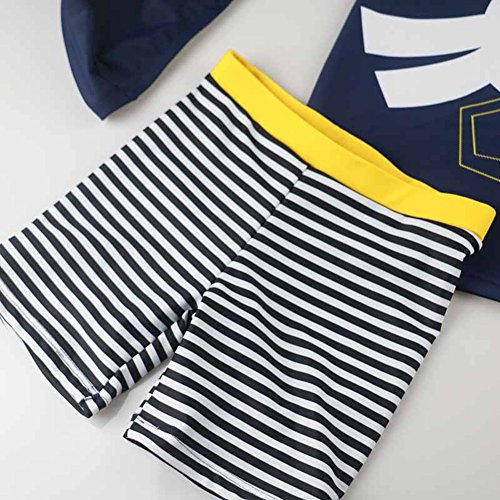 夏モチーフがかわいいデザイン☆スイムスーツ(上下)とキャップがセットになった男の用水着です