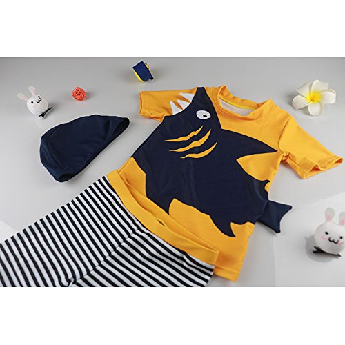 Spinas(スピナス)ベビー キッズ 水着 男の子用 3点セット 半袖 ラッシュガード スイムパンツ キャップ かわいい 夏モチーフ 80-130cm 全4種(ヨット バード イエローシャーク ブルーシャーク)