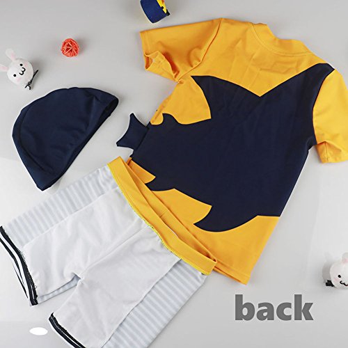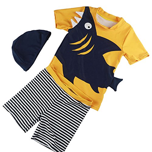 夏モチーフがかわいいデザイン☆スイムスーツ(上下)とキャップがセットになった男の用水着です