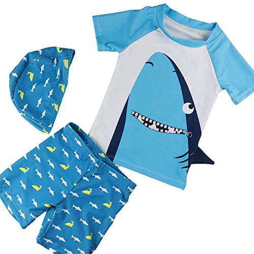 Spinas(スピナス)ベビー キッズ 水着 男の子用 3点セット 半袖 ラッシュガード スイムパンツ キャップ かわいい 夏モチーフ 80-130cm 全4種(ヨット バード イエローシャーク ブルーシャーク)