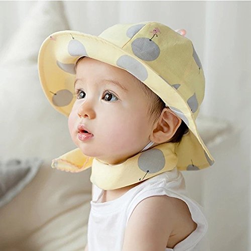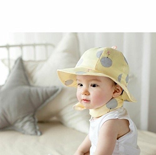 Spinas(スピナス) キッズ ベビー 帽子 風船 柄 つば広 ハット あごひも かわいい 日よけ UVカット 熱中症 防止 パステル おでかけ かわいい 全3色 ピンク グレー イエロー (イエロー)