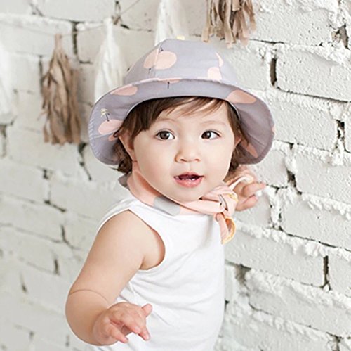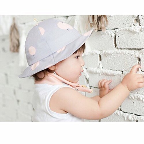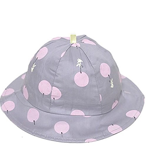 Spinas(スピナス) キッズ ベビー 帽子 風船 柄 つば広 ハット あごひも かわいい 日よけ UVカット 熱中症 防止 パステル おでかけ かわいい 全3色 ピンク グレー イエロー (グレー)