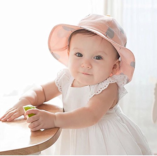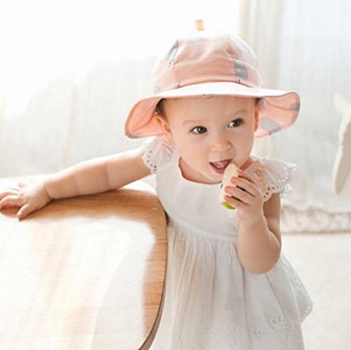 Spinas(スピナス) キッズ ベビー 帽子 風船 柄 つば広 ハット あごひも かわいい 日よけ UVカット 熱中症 防止 パステル おでかけ かわいい 全3色 ピンク グレー イエロー (ピンク)