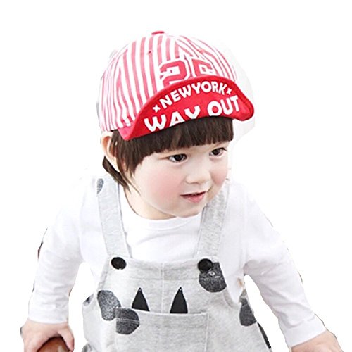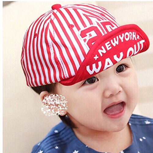 Spinas(スピナス) キッズ ベビー 帽子 キャップ ロゴ NY ニューヨーク つば かわいい 日よけ UVカット 熱中症 防止 おでかけ 男の子 女の子 全3色 ブルー レッド ピンク (レッド)