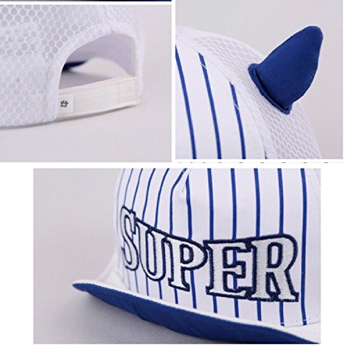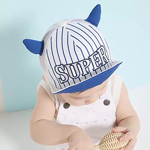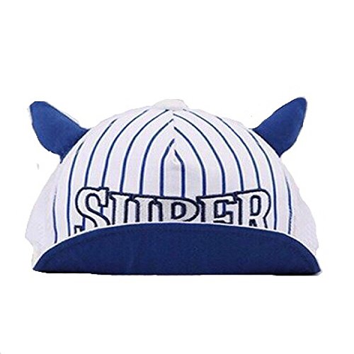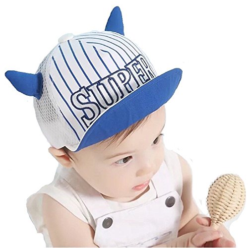 Spinas(スピナス) キッズ ベビー 帽子 キャップ ロゴ 牛 ストライプ SUPER メッシュ 夏 耳付き つば かわいい 日よけ UVカット 熱中症 防止 おでかけ 男の子 女の子 全2色 ブルー イエロー (ブルー)