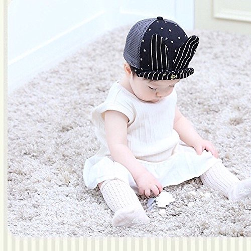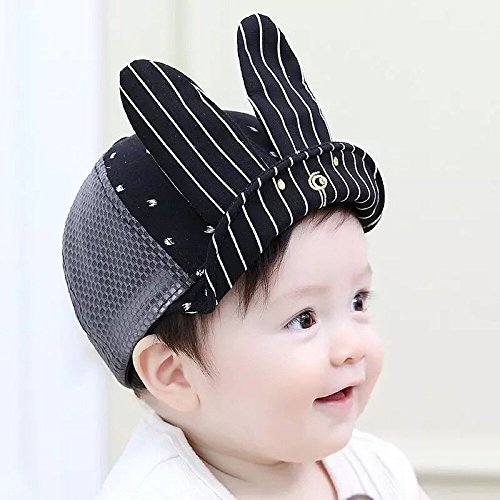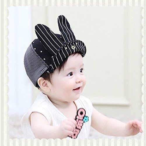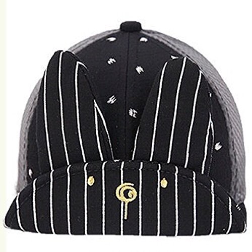 Spinas(スピナス) キッズ ベビー 帽子 キャップ ロゴ うさぎ ストライプ メッシュ 夏 ワイヤー つば かわいい 日よけ UVカット 熱中症 防止 おでかけ 男の子 女の子 全3色 ブラック ピンク グレー (ブラック)