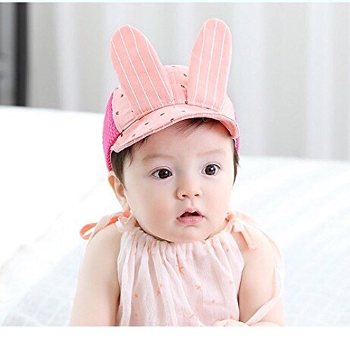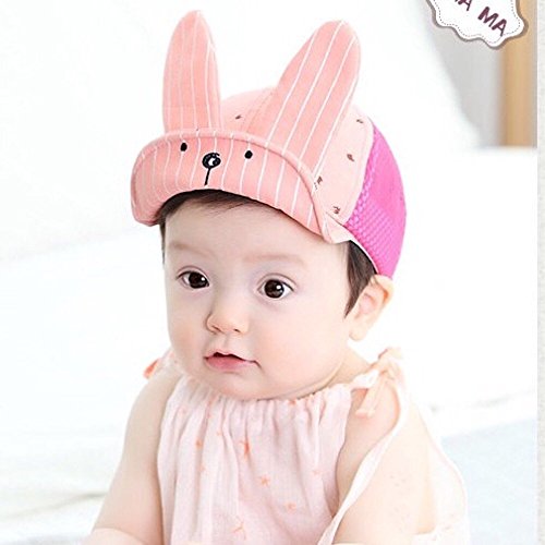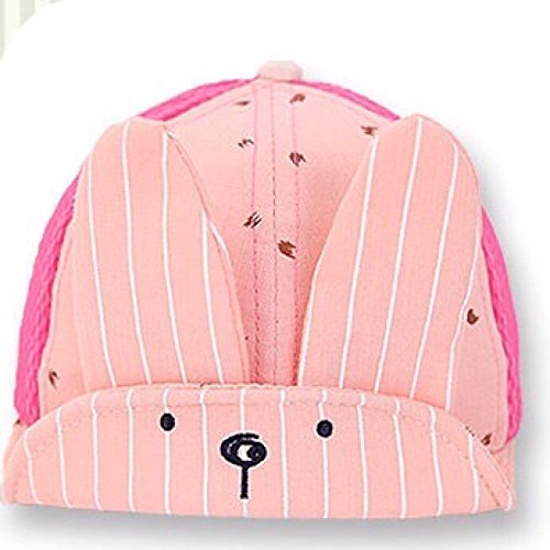 Spinas(スピナス) キッズ ベビー 帽子 キャップ ロゴ うさぎ ストライプ メッシュ 夏 ワイヤー つば かわいい 日よけ UVカット 熱中症 防止 おでかけ 男の子 女の子 全3色 ブラック ピンク グレー (ピンク)