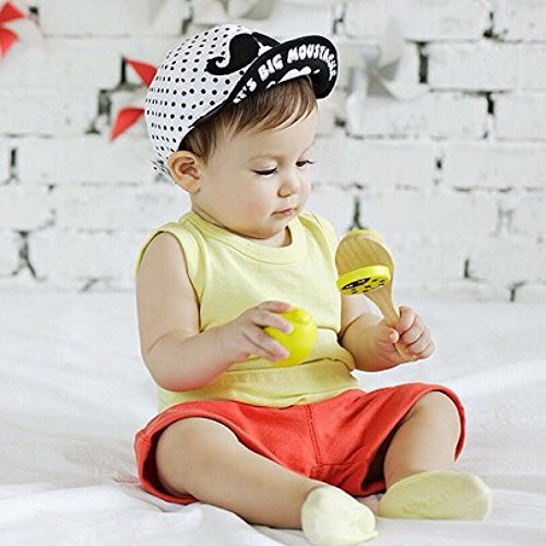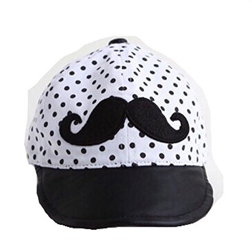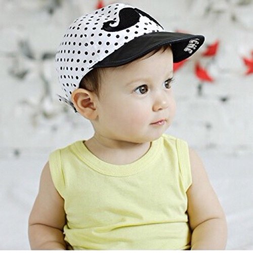 Spinas(スピナス) キッズ ベビー 帽子 キャップ ロゴ ひげ 水玉 ドット 夏 ワイヤー つば かわいい 日よけ UVカット 熱中症 防止 おでかけ 男の子 女の子 全3色 ブラック ネイビー ホワイト (ホワイト)