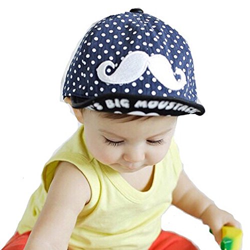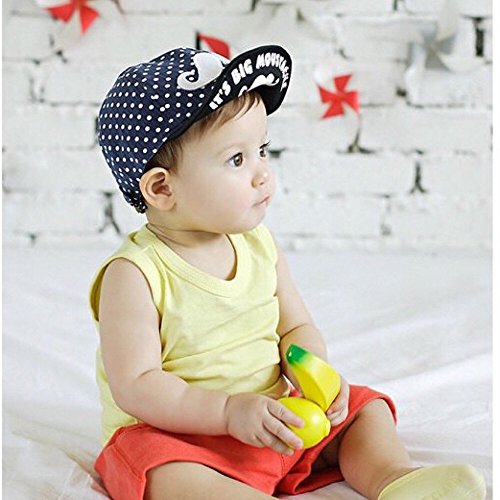 Spinas(スピナス) キッズ ベビー 帽子 キャップ ロゴ ひげ 水玉 ドット 夏 ワイヤー つば かわいい 日よけ UVカット 熱中症 防止 おでかけ 男の子 女の子 全3色 ブラック ネイビー ホワイト (ネイビー)