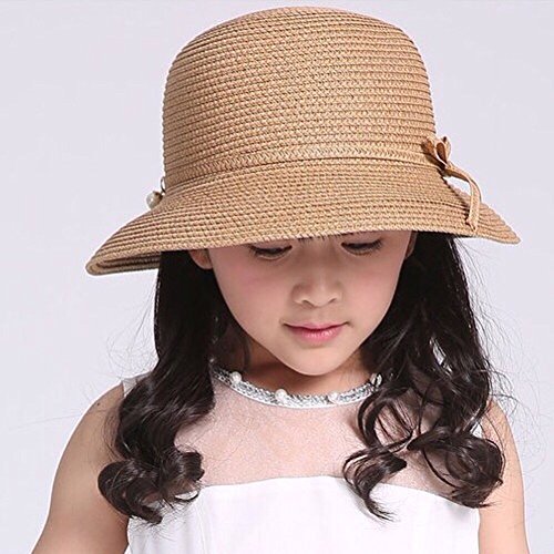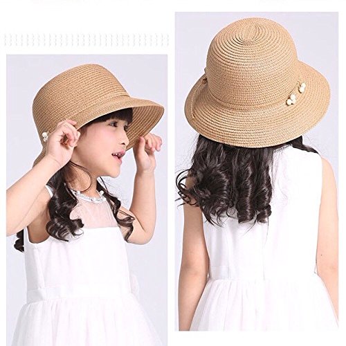 Spinas(スピナス) キッズ ベビー 帽子 麦わら帽子 パール 海ビーチ 旅行 おしゃれ 帽子 かわいい 日よけ UVカット 熱中症 防止 おでかけ 全2色 ベージュ ブラウン (ブラウン)