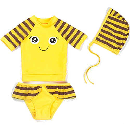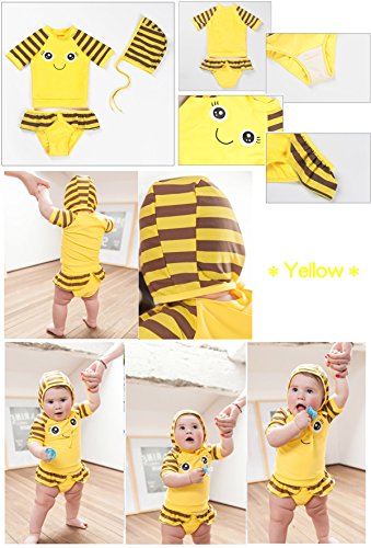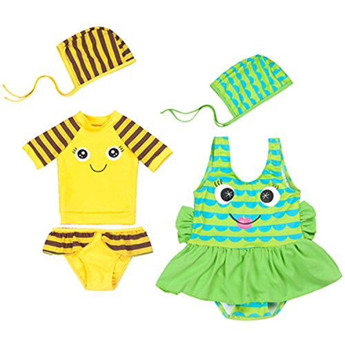 Spinas(スピナス) 思わず笑顔になる♪キッズ ベビー ガールズ ボーイズ 水着 上下セット スマイル 帽子付 全2色(イエロー、グリーン) (2XL (135~140cm), イエロー)