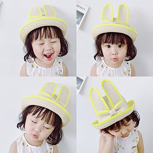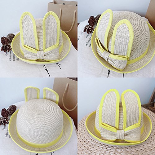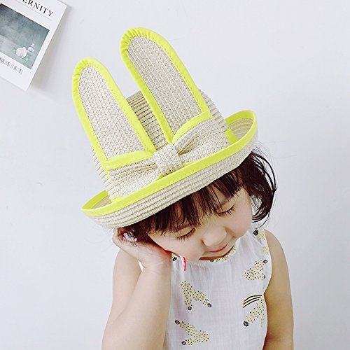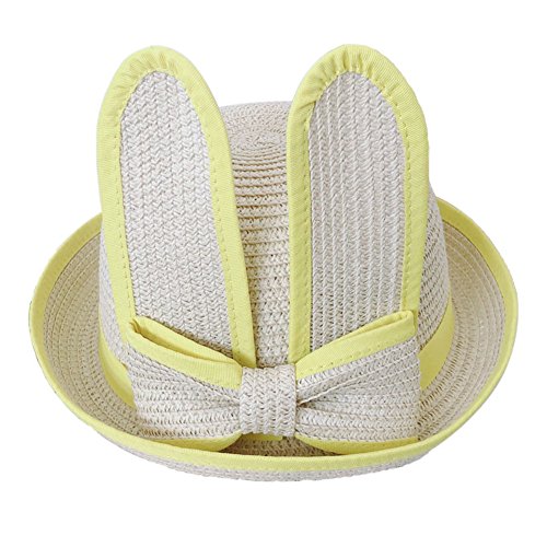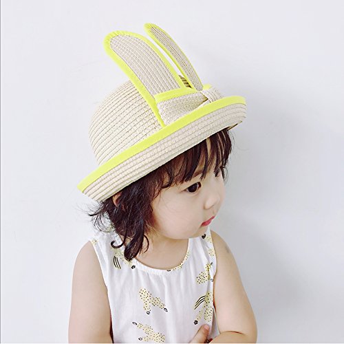 Spinas(スピナス)ベビー キッズ 大きな うさ耳付き 麦わら 帽子 かわいい リボン ストローハット 48cm 50cm 52cm