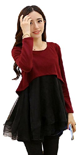 Spinas(スピナス) マタニティ 秋 冬 チュニック ワンピース オーガンジー ニット 全3色 ライトグレー ワインレッド ブラック (L, ワインレッド)