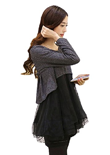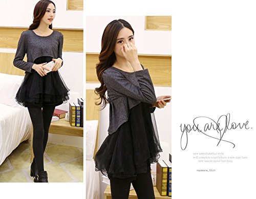 Spinas(スピナス) マタニティ 秋 冬 チュニック ワンピース オーガンジー ニット 全3色 ライトグレー ワインレッド ブラック (XXL, ライトグレー)