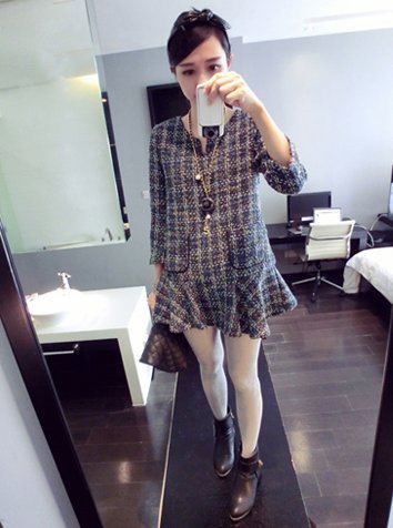 ☆Spinas(スピナス) マタニティ 秋 冬 ツイード ワンピース チュニック 上品 ローウエスト かわいい 全1色 サイズ(M,L,XL)☆