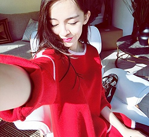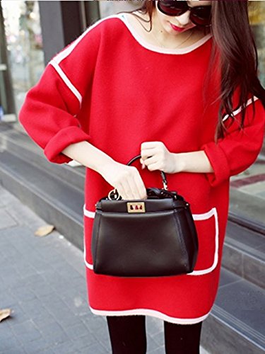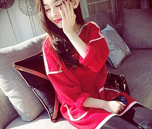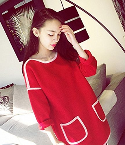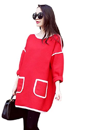 Spinas(スピナス) マタニティ 秋 冬 ニット ワンピース レトロ 可愛い ゆったり やわらか カシミア 全2色 レッド ネイビー (L, レッド)