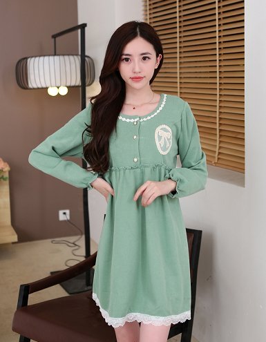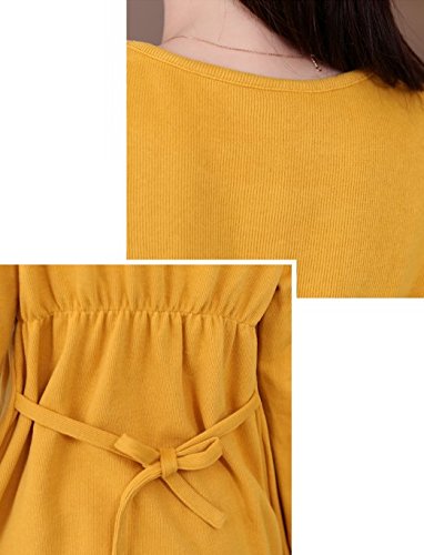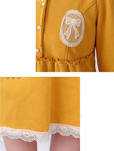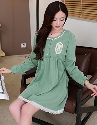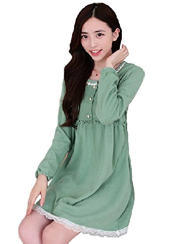 Spinas(スピナス) マタニティ ワンピース パール風 ボタン リボン 刺繍 フェミニン 全3色 グリーン ピンク イエロー (XL, グリーン)