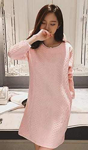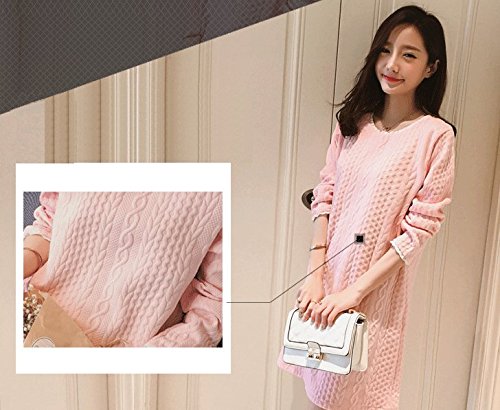 ★Spinas(スピナス) マタニティ 春 秋 冬 ワンピース チュニック 編み模様 ポコポコ クルーネック ピンク (M,L,XL,XXL 全4サイズ)★