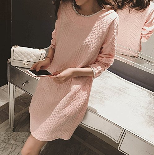 Spinas(スピナス) マタニティ 春 秋 冬 ワンピース チュニック 編み模様 ポコポコ クルーネック ピンク (M,L,XL,XXL 全4サイズ) (M)