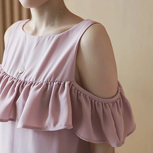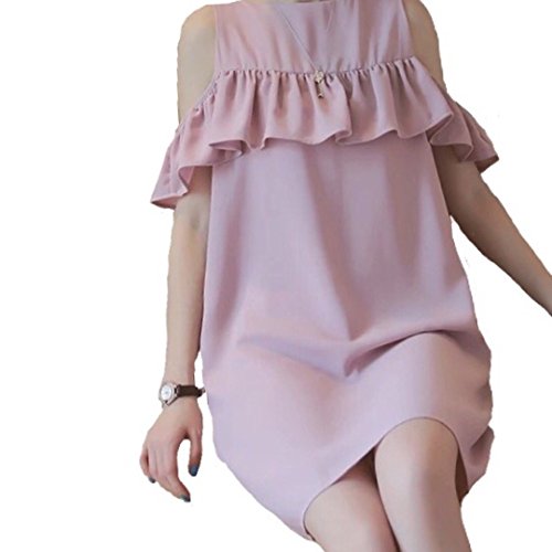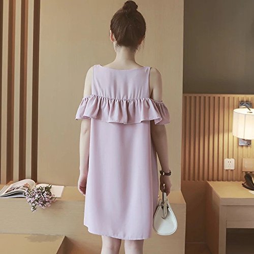 Spinas(スピナス) レディース マタニティ ウェア ワンピース フリル チュニック 肩出し半袖 授乳 口 無地 丸首 シンプル 大人 かわいい 夏 ピンク おしゃれ (M)