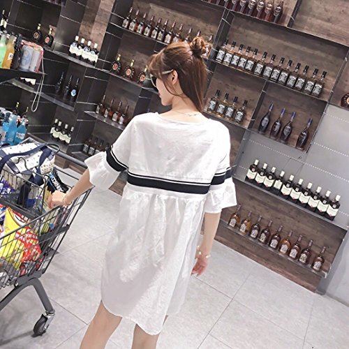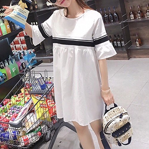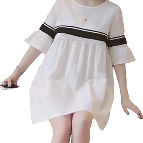 Spinas(スピナス) レディース マタニティ ウェア ワンピース フリル ライン バイカラー チュニック 肩出し半袖 授乳 口 無地 丸首 シンプル 大人 かわいい 夏 ピンク おしゃれ ホワイト (XL)