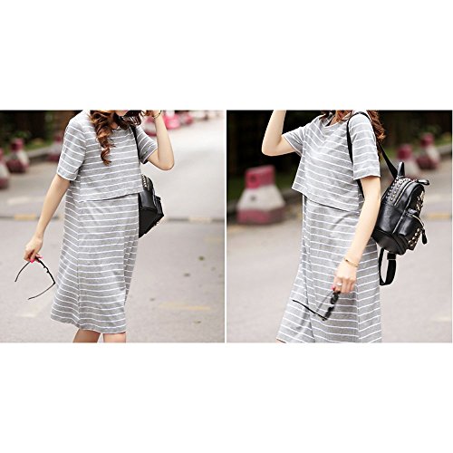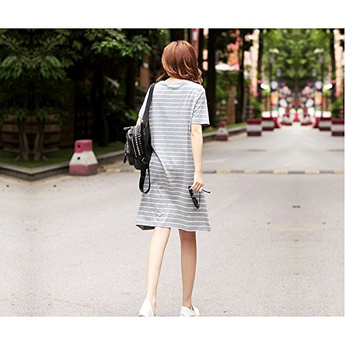 Spinas(スピナス) マタニティ 半袖 ワンピース 授乳 口 ボーダー M~XL 全3色(ライトグレー ホワイト ネイビーブルー) (L, ライトグレー)