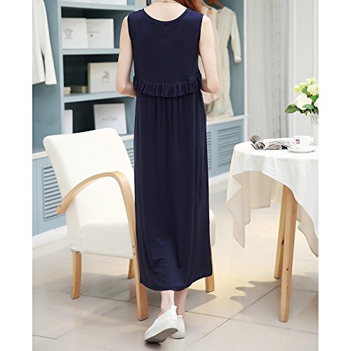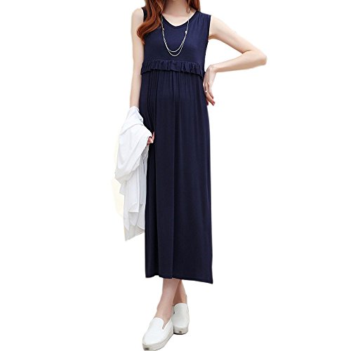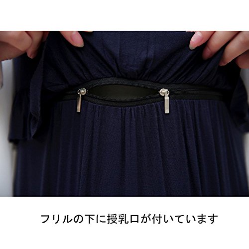 Spinas(スピナス) マタニティ ノースリーブ マキシ ロング ワンピース 授乳 口 M~XL 全2色(グレー ネイビー) (M, ネイビー)