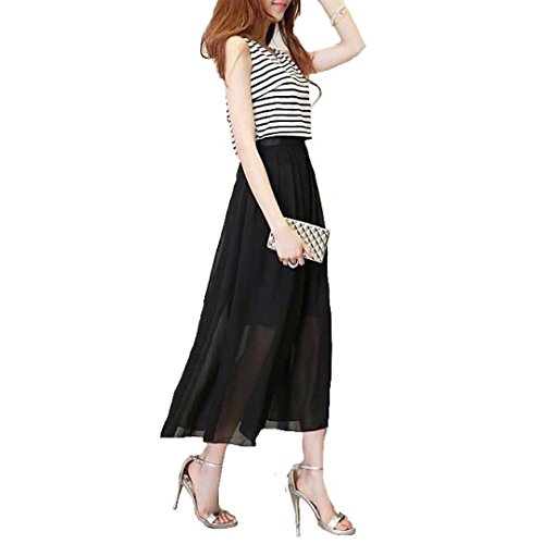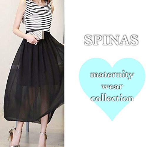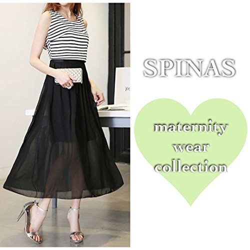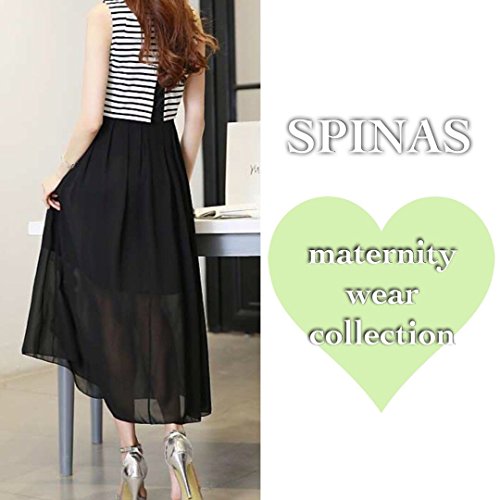 Spinas(スピナス) レディース マタニティ ウェア ワンピース マキシ ロング ボーダー 切り替え ノースリーブ 丸首 シンプル 大人 かわいい 夏 楽 ふんわり フレア シフォン 全2色 ホワイト・ブラック (M, ブラック)