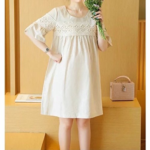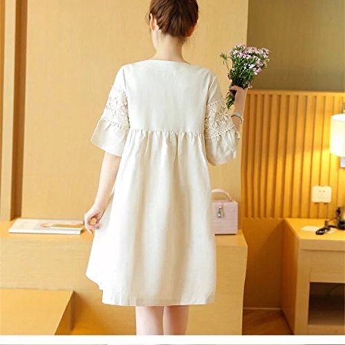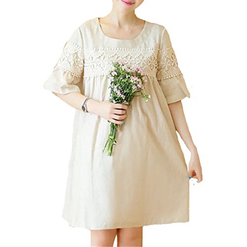 Spinas(スピナス) レディース マタニティ ウェア ワンピース 刺繍 ボヘミアン シンプル 大人 かわいい 夏 楽 ふんわり フレア ひざ丈 ミモレ丈 全2色 ホワイト オレンジ (M, ホワイト)