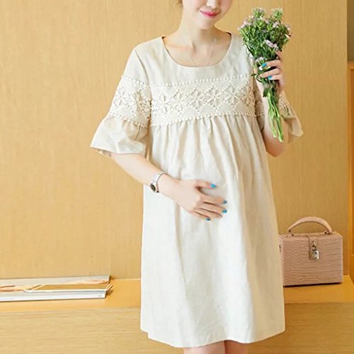 Spinas(スピナス) レディース マタニティ ウェア ワンピース 刺繍 ボヘミアン シンプル 大人 かわいい 夏 楽 ふんわり フレア ひざ丈 ミモレ丈 全2色 ホワイト オレンジ (XL, ホワイト)