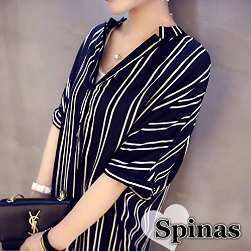 Spinas(スピナス) レディース マタニティ ストライプ 半袖 シャツ ワンピース One Color 【ブラック】 縦じま効果で着やせ効果ありの優秀ワンピ♪ (XXL)