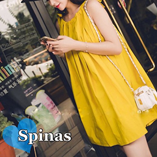 Spinas(スピナス) レディース マタニティ Aライン コットン ワンピース One Color 【イエロー】 鮮やかなイエローが真夏の太陽にはえる!ふんわりAラインがかわいいとっておきの1枚♪ (XL)