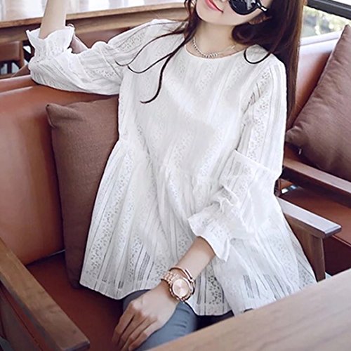 Spinas(スピナス) レディース マタニティ レース フレア チュニック 長袖 秋 冬 1color 【 ホワイト 】 Aラインシルエットが可愛い妊婦さんをより演出します (XL)