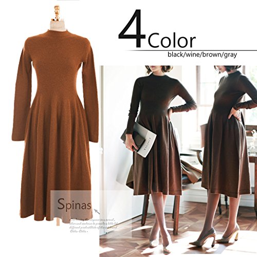 Spinas(スピナス) 一枚でしっかり着痩せ マタニティ ハイネック 長袖 Aライン スリムワンピース全4色(ブラック グレー ワインレッド ブラウン)