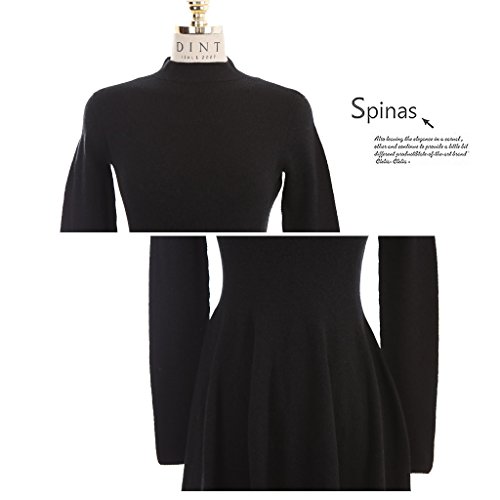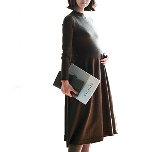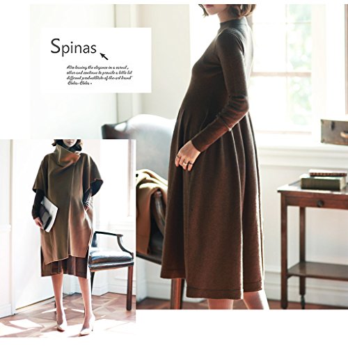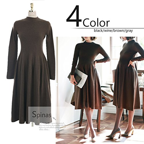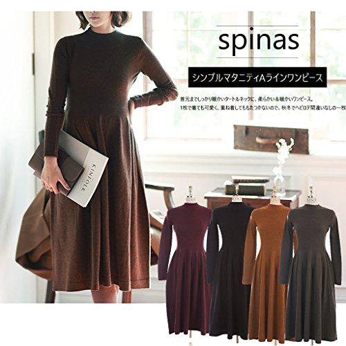 Spinas(スピナス) 一枚でしっかり着痩せ マタニティ ハイネック 長袖 Aライン スリムワンピース全4色(ブラック グレー ワインレッド ブラウン)