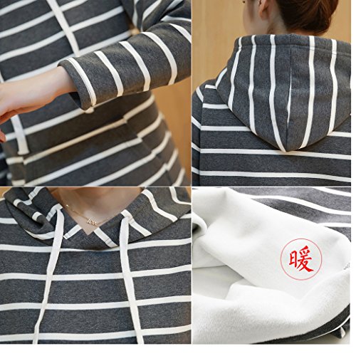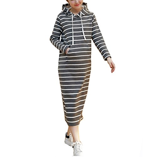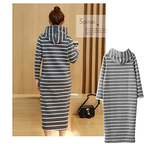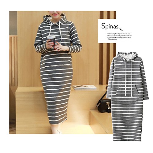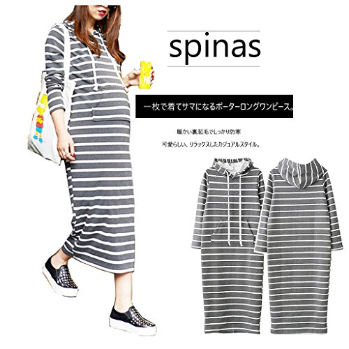 Spinas(スピナス) 一枚で着てサマになる マタニティ フード付き あったかい 裏起毛 ボーダー ロング ワンピース (L, グレー)